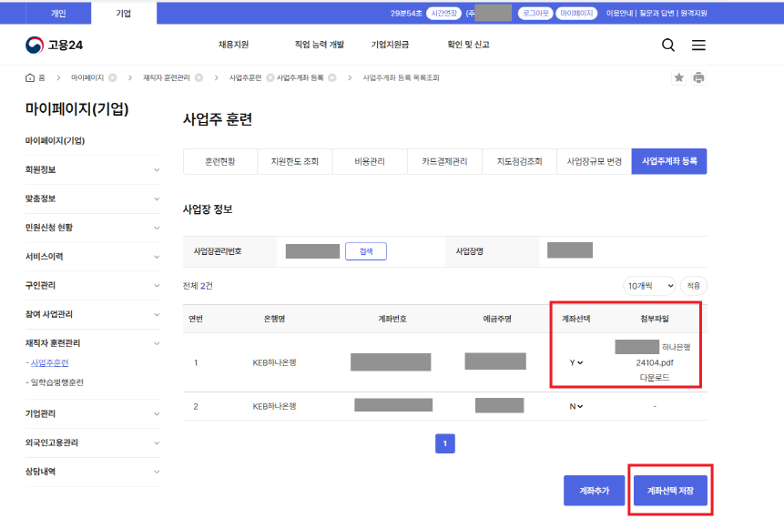 사업주 훈련 계좌 등록 후, 사업장 통장사본 첨부까지 해주셔야 합니다.
