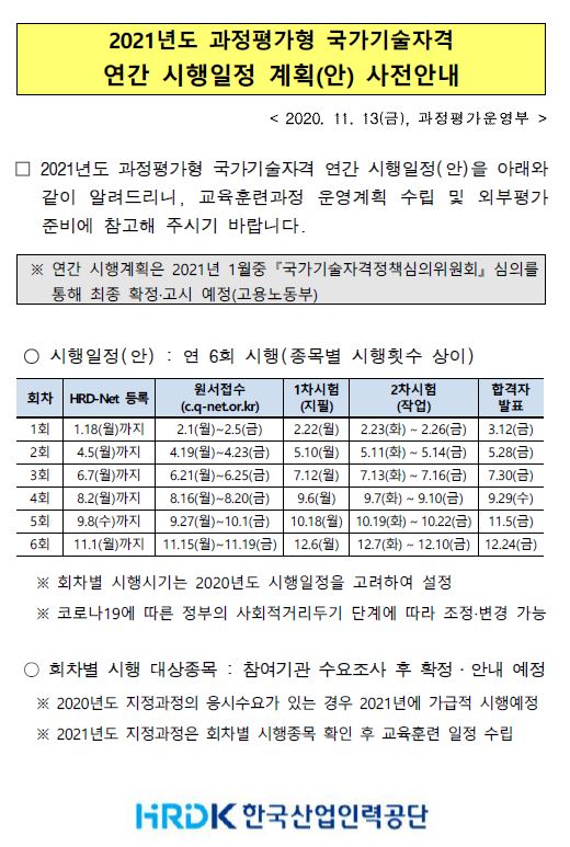 과정평가형자격 21년 시험일정입니다!